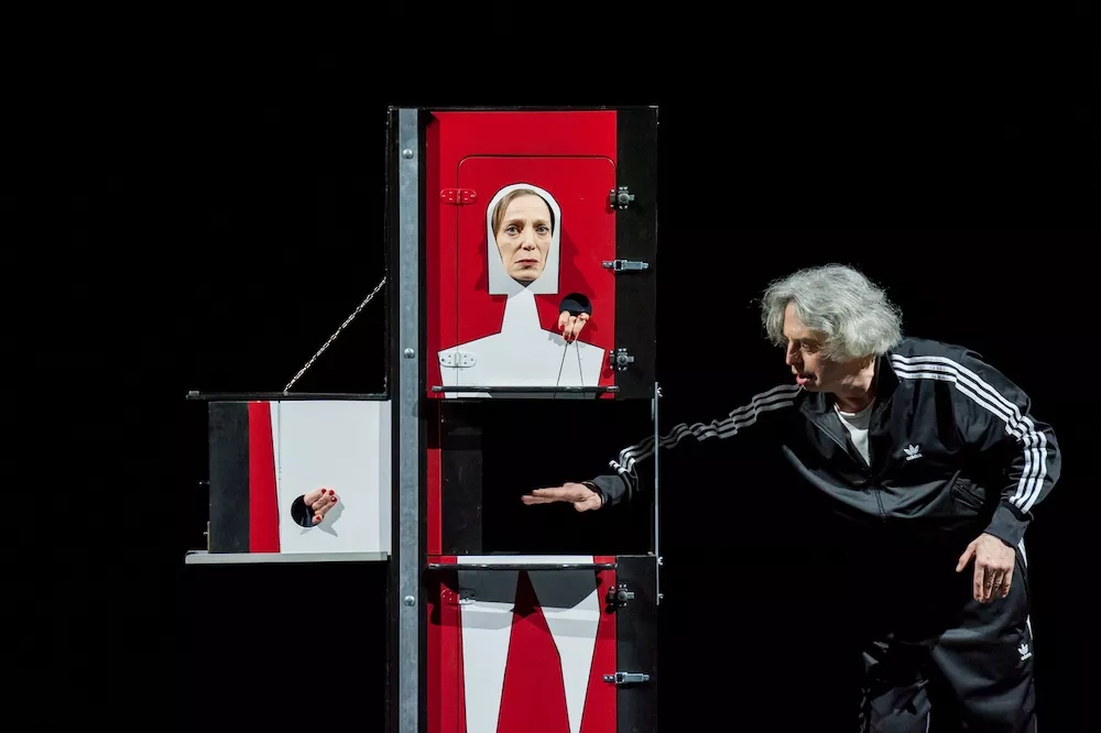 Ma Abracadabra dona parole anche alla donna, e l’esito è un’altissima poesia di amore e morte: rigida, seduta su quella poltrona che l’ha nascosta e poi rivelata, inglobata nel suo ventre segreto e infine mostrata nello splendore della magia, Emanuela Villagrossi interpreta tutta la devozione di un amore di pelle e sangue — “abito il tuo ventre, abito la tua testa, abito le tue mani, le tue orecchie, la tua lingua, i tuoi piedi” — e la caparbietà di una separazione da percorrere come in un complesso rituale. “Smembrami, dammi in pasto ai cani, (…) lavami, avvolgimi in un lenzuolo bianco, in un drappo di seta, seppelliscimi con le tue mani”, recita Villagrossi, quasi che solo in quest’appropriazione e in questo contatto con il corpo, con la matericità fragile e impermanente della carne, si potesse trovare una terapia al dolore. Medicamenta e altri medicamenta era, non casualmente, il titolo della silloge di Patrizia Valduga in cui la passionalità e il lutto trovavano un connubio nella ritmicità della lirica, negli imperativi che si succedono in rima, e la cui cifra stilistica sembra riconoscersi a tratti al di sotto delle parole scritte da Castellani e Raimondi, quando l’eros sembra al punto di travolgere l’ordine delle cose, la rabbia annegare il reale, il dolore sommergere il palcoscenico.