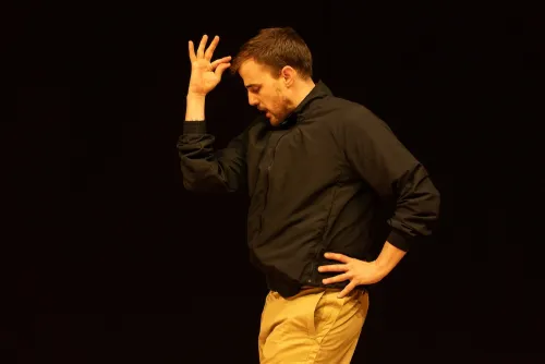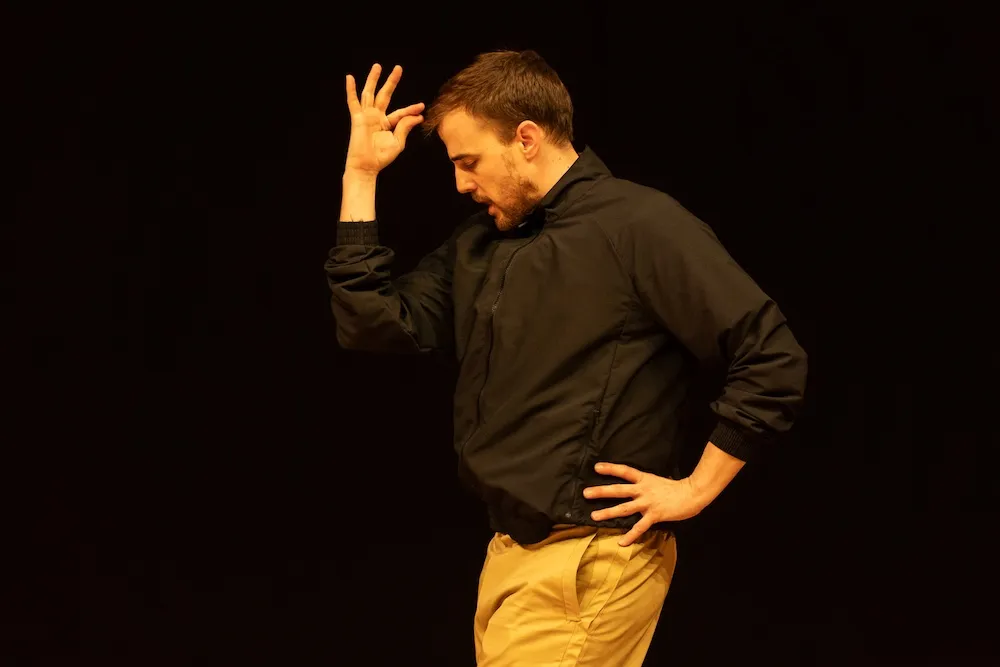 La paleontologia, ricorda Asteroide, ci consente di risalire dalla morte alla vita, di riprodurre a partire da una manciata di fossili un intero ecosistema, e il paleontologo D’Agostin – come Álvarez prima di lui: e come tutti noi in platea, esperti nella lenta, microscopica sutura dei frammenti d’ossa in cui il lutto di un amore ci ha frantumato – può solo riedificare sé stesso, rimodellare il proprio scheletro, formulare una spiegazione onnicomprensiva che dia un senso all’accaduto, e lenisca la pena con l’asettica certezza di dati, composizioni chimiche, cause ed effetti. Take your broken heart, make it into art è l’asciutto consiglio che Marco riceve nei giorni dell’abbandono, ed è anche questa sfida – questo privilegio – che Asteroide racconta, restituendoci l’epopea della costruzione di uno spettacolo e della ricostruzione di una vita. La drammaturgia di D’Agostin, mai così stratificata (l’immagine geologica sembra quanto mai opportuna) e tuttavia pervasa da un rinnovato gusto per la narrazione, aggiunge perciò ai piani del racconto un’ulteriore traiettoria metaperformativa, ripercorrendo le caratteristiche, le difficoltà, le intuizioni e gli slanci di quel genere teatrale che, più di altri, sembra somigliare allo scontro con un meteorite. Il musical, nel quale ex abrupto attori e personaggi iniziano a cantare e ballare, diviene il correlato di un cataclisma e del suo superamento, il simbolo dell’irruzione della straordinarietà nel quotidiano e nel banale. Come in una conferenza-spettacolo, D’Agostin a poco a poco mette in scena, tra passi di danza e lacerti di canzoni, uno show in puro Broadway style dedicato alla storia di Walter Álvarez, e al contempo scompone il musical nei suoi elementi fondanti – la progressione degli inserti musicali, dall’I am song che definisce il carattere del protagonista al magniloquente production number destinato a restare impresso nella memoria del pubblico – in un nuovo affondo sulla persistenza dell’entertaining nell’immaginario collettivo. Già Best Regards, la creazione del 2021 dedicata alla memoria di Nigel Charnock, citava Cheek to Cheek e si chiudeva con una canzone originale, il cui ritornello – “you died so I can live and dance” – sembra oggi poter costituire un’anticipazione di quel grumo di dolore e creatività artistica che Asteroide lascia deflagrare in un’esplosione di paillettes: ma mai come oggi una raggiunta maturità autoriale consente a D’Agostin di far emergere, in equilibrio tra comicità e dramma, le prospettive dell’ineffabile mistero sul perché tutte e tutti noi ci si riunisca qui, intorno a uno spazio vuoto, ad ascoltare storie, ammirare attori, fonderci con le loro voci.