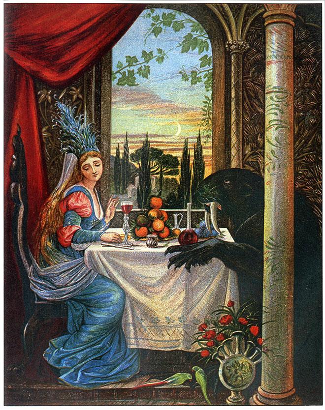 Capiamo subito quel che ci viene offerto: più che l’evasione in un mondo di sogno, la verità resa leggibile dalla nitida visione della finzione. Sappiamo subito, per una istantanea e un po’ misteriosa forma di intuizione, di che fonti, di che alberi, di che animali qui si tratti. Sappiamo di che bellezza si parli. A indicarne la natura è, fra le altre cose, la continguità col sole che ci richiama alla mente con immediatezza parole celebri: “Chi è costei che si leva come l’aurora, bella come la luna fulgida come il sole.” In una vertiginosa stratificazione di significati, simboli, tradizioni, culture, epoche, in questa esaltazione della luminosità come principale attributo della bellezza della principessa, troviamo accanto al Cantico del cantici, antichissimi culti del sole e della luna, in cui alla luce era associata l’idea stessa di bene; ci imbattiamo nel concetto di claritas, elaborato da Tommaso d’Aquino che identificava la bellezza con proporzione, integrità e chiarezza; ricordiamo le fronti, le chiome, gli sguardi lucenti delle donne lontane dei trovatori e della madonne oneste degli stilnovisti, fino alla Dulcinea di Cervantes, di “bellezza sovrumana, perché in essa si realizzano tutti gli impossibili e chimerici attributi che i poeti danno alla loro dame”: capelli d’oro, occhi come soli, guance di rose, pelle di neve.