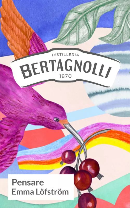 Otto giovani illustratori da tutto il mondo riassumono in un'unica grande tavola otto parole scelte da Bertagnolli, grappa trentina dal 1870.