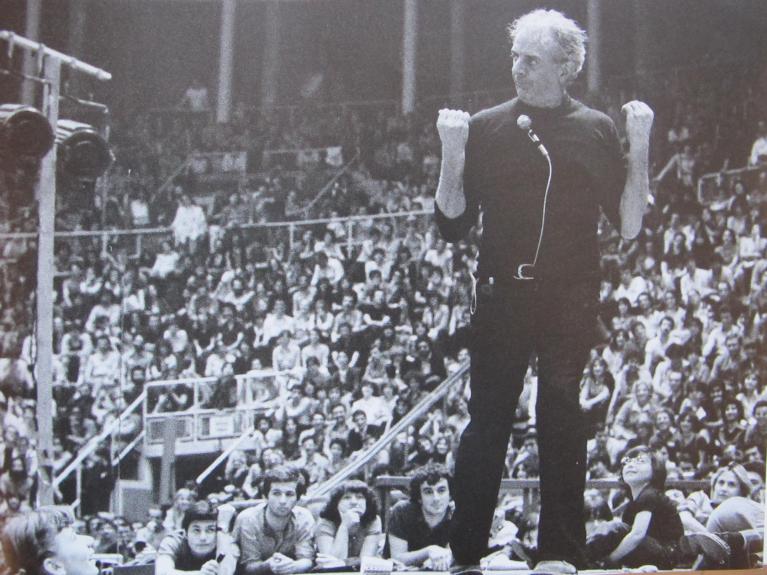 Ma Dario Fo, per noi italiani, è stato soprattutto un grande attore. Come non ricordare la Palazzina Liberty a Milano, luogo alternativo, freddo e pieno di gente riunita per vedere spettacoli, discutere. E il Mistero buffo là davanti, o nei palasport, uno solo, un “giullare” un “comico dell’arte” che teneva incollati al suo racconto, ai suoi gesti, agli scarti delle mani, delle braccia, del busto, degli occhi, che subito creavano un personaggio o addirittura una folla. Entusiasmo. Partecipazione. Come nel suo intervento che chiuse il Convegno contro la repressione a Bologna, in piazza VIII Agosto, davanti a sessantamila persone, dopo i fatti del ’77.