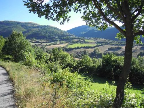 La prima meta è l’abbazia benedettina di Sant’Eutizio, in quel di Preci. Se dal fondovalle si alza lo sguardo ecco la collana di paesetti arroccati e chiese romaniche. Tutti rimessi in piedi con pazienza e gusto dopo il terremoto del ’79. Il traffico è inesistente: guidando si sentono le cicale e lo scorrere dei torrenti.