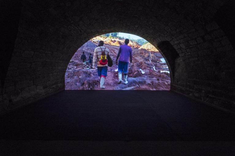 Presentato in anteprima nazionale al festival di Locarno70 l’8 agosto, a Kassel è allestito in una sorta di deposito sotterraneo all’esterno del Fridericianum. Attraverso una proiezione a quattro canali, l’artista americano mette in parallelo volti, cunicoli e anfratti delle miniere (quelli di Kiiki Neri nel Suriname, una miniera d’oro a cielo aperto, e quelli della miniera sotterranea di rame in Serbia). Scene di lavoro si alternano a momenti di vita quotidiana, a interviste sulle aspettative dei minatori, abbattendo le differenze geografiche e tessendo un tributo a questi particolari “eroi”. A rimarcare l’atmosfera alienante di questi lavoratori è un passaggio del romanzo Misérable Miracle di Henri Michaux, trascritto nella didascalia (Ora sono di fronte a una roccia. Si divide. No non è più divisa. È come prima. Ancora una volta è suddivisa in due. No, non è separata. Si divide ancora una volta. Ancora una volta non si divide più e questo va a tempo indefinito. Roccia intatta allora poi divisa allora intatta roccia allora divisa quindi roccia intatta quindi divisa quindi roccia intatta quindi divisa allora roccia intatta poi divisa). Perché, in fondo, lo sappiamo bene, “Kassel non invita alla logica”.