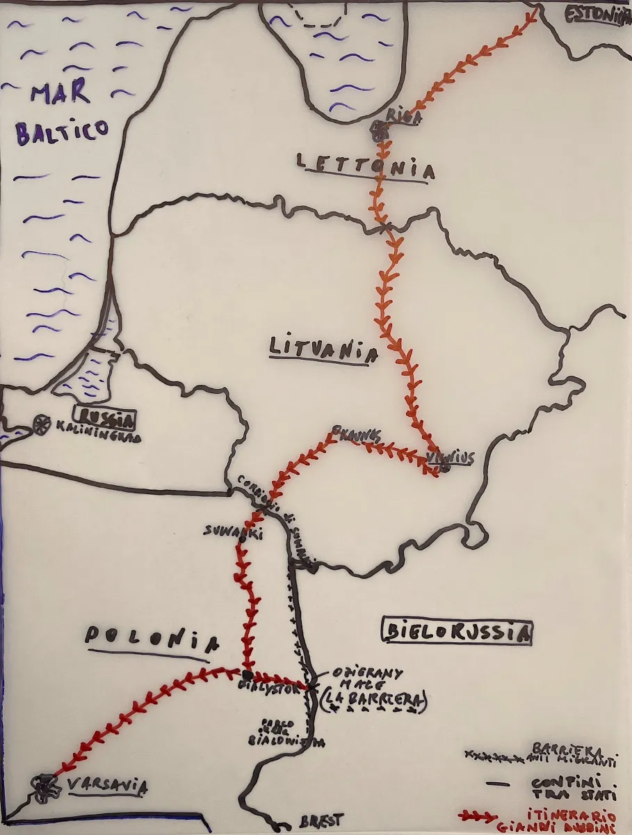 In copertina, Mappa dell'itinerario di Gianni Dubbini Venier tra Estonia e Polonia, attraverso il corridoio di Suwałki.