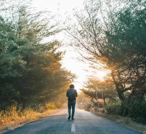 Il camminante ha una steady-cam nel cervello. È diventato la strada che percorre. I ciottoli che calpesta, la ghiaia. La sabbia che smuove. È ormai una cosa sola con il paesaggio sussultante tutt’intorno. Una cosa sola con il suo cammino. Come l’arciere con l’arco. Come il cavaliere con il cavallo. È in ogni cosa esigua. In ogni cosa immane. Nella scaglia della pigna. Nella roccia della vetta. Non ha più nome. Oltrepassa l’agglomerarsi della città nel fondovalle. Oltrepassa le colline. Oltrepassa la corona dei monti. Nuota nell’estasi profonda. Vola nell’aria. Come un’allodola, che spazia nel cielo e intende facilmente il linguaggio dei fiori e delle cose mute.