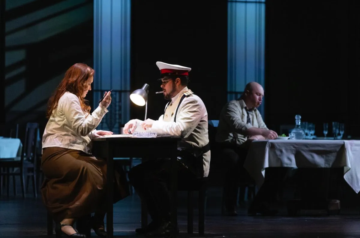 Fra questi due poli, lo spettacolo si dipana ruvido ma mai “oltraggioso”, talvolta anche efficace nelle immagini, campo di libero esercizio della fantasia di Barkhatov pur nella fin troppo ricca messe di dettagli ininfluenti. Fra questi, la moltiplicazione dei fantasmi. Nell’opera esiste solo quello del suocero, ammazzato da Katerina con il veleno per topi nei funghi. Il regista fa apparire anche lo spettro del marito, massacrato dalla moglie insieme all’amante: spunta al terzo atto, uscendo dalla grande torta nuziale dei due assassini che nel frattempo hanno deciso di convolare. Invenzione, anche questa, molto da film. Forse si è ritenuto che fosse necessario sottolineare che Šostakovič è stato un importante autore di colonne sonore cinematografiche. Ma la Lady Macbeth non ha niente di un film. E per la verità, all’epoca in cui il musicista sovietico componeva il suo capolavoro operistico, di colonne sonore ne aveva scritte solo tre o quattro, della quarantina che compaiono nel suo catalogo definitivo. Ma del resto, anche i meravigliosi Interludi orchestrali che separano le scene all’interno degli atti, qui diventano altrettante piccole colonne sonore di episodi “muti” che talvolta annunciano quello che accadrà, altre volte sono francamente superflui, per quanto curati o suggestivi.