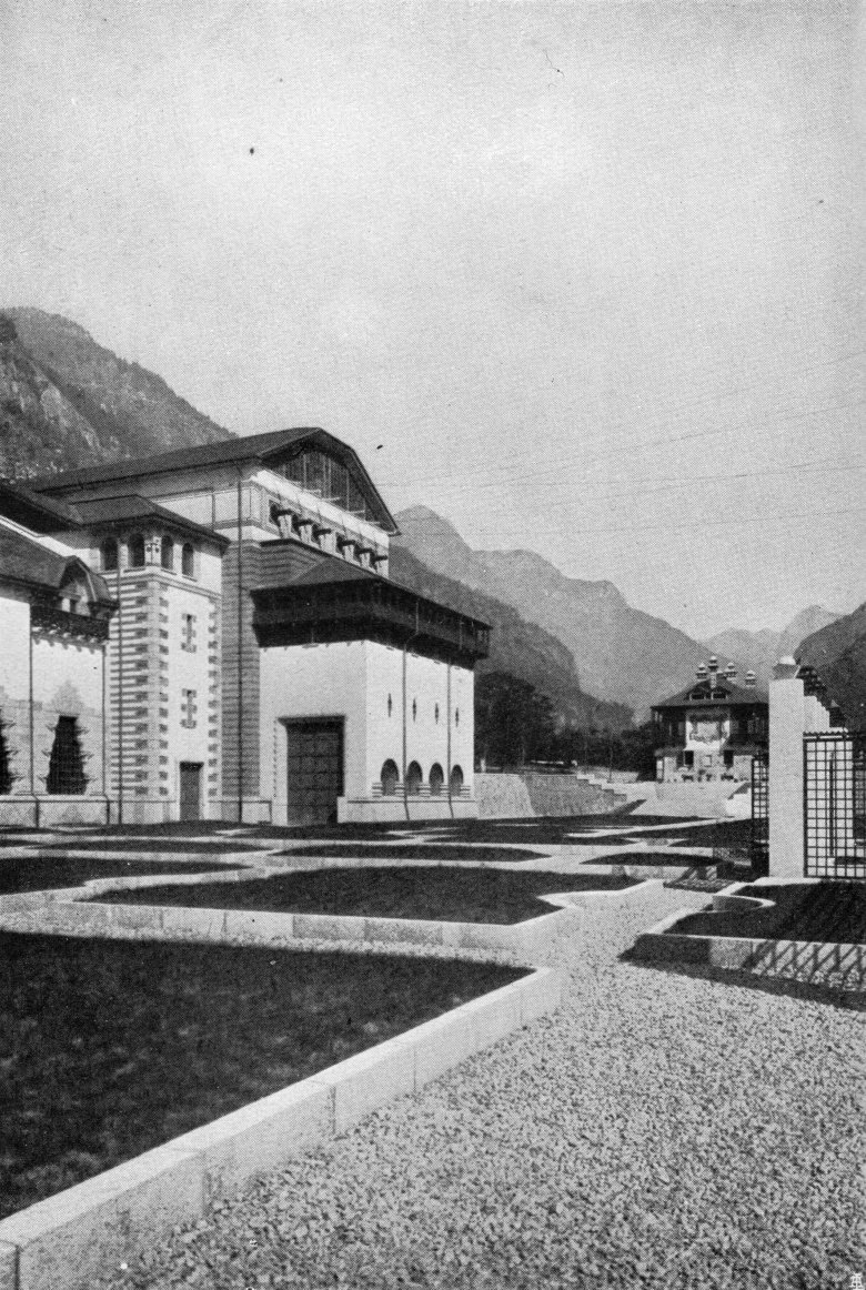 La specificità dei progetti di Portaluppi appare ancor più evidente nel confronto con gli altri rarissimi giardini elettrici. Infatti, durante gli stessi anni, nella valle della Romanche, nel Delfinato, sorse una importante centrale elettrica anch’essa dotata di un generoso giardino. La centrale Les Vernes vantava su un pianoro elevato un giardino sempre di stile geometrico, un assemblaggio regolare di alberi, nonché una spettacolare fontana. L’edificio, che ricorda vagamente una villa rinascimentale italiana, possiede anche una maestosa doppia scala ispirata a quella del vicino castello di Vizille. Servendo i bisogni dell’elettrometallurgia, che necessitava di una importante fornitura di energia per la fabbricazione di obici, l’insieme di architettura e scenografia paesaggistica fu concepito dall’architetto di Grenoble Florentin Nublat per l’industriale locale Charles-Albert Keller. Come a Verampio, anche a Les Vernes l’intervento massiccio negli equilibri naturali e l’uso industrial-militare sono mascherati e hanno come risultato finale la creazione di una complessa macchina estetizzata. Una certa grandeur dovuta all’amplificazione teatrale dell’acqua, la finta amenità del giardino e l’ascensione solenne via la grande scalinata conferivano anche qui all’artefatto industriale la qualità di una lente amplificatrice. Diversamente da Verampio, che sin dall’inizio esibiva una estrema unità, a Les Vernes si è di fronte più a un complesso “ornamentato” che a un’opera organica. Gli elementi rinascimentali o barocchi, pur imponenti, funzionano da citazione generale, e manca soprattutto l’ironia dell’architetto milanese, che ritroveremo nella seconda delle centrali elettriche ossolane dotate di un giardino, quella di Crevoladossola.