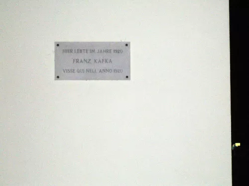 Una è la lapide posta a ricordare la morte del poeta Christian Morgenstern, avvenuta a Merano il 31 marzo del 1914. L’altra ricorda il trimestrale soggiorno di Franz Kafka, sempre a Merano, nel 1920 (dai primi di aprile alla fine di giugno). Ho scritto Merano, ma avrei dovuto scrivere più correttamente Untermais (Maia Bassa) perché allora la zona dove soggiornarono i due scrittori era comune autonomo, non ancora inglobato nella città di Merano/Meran.