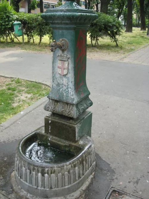 Se ne sta in disparte ai bordi del viale sul corso Indipendenza, chissà da quanto, in questo periodo è mezza coperta da una quinta di manifesti elettorali, nuovi e già più vecchi di lei. La vedo nel riquadro della finestra mentre lavoro, quando alzo gli occhi. Raramente sola, a disposizione sempre. Al mattino presto, per non disturbare e non essere disturbati, sono i barboni del viale che vanno a lavarsi, poi è un ragazzino che le piomba addosso in frenata e beve sporgendosi dalla bicicletta o dalla moto, poi una madre che lava le mani al suo bambino, un vecchio che si rinfresca la fronte, un piccione e un cane che si contendono la vasca. Lei fa il suo dovere, ferma, di tutti e di nessuno. Non le importa sapere chi siano quelli che si avvicinano, di quale paese, di quale pianeta, e verso dove rotolino. Si dà da fare senza domande, senza lusinghe, senza premio e tanto meno guadagno. Non si aspetta di essere ringraziata, ma lasciata in pace, questo sì. Dal suo quadrato di carta non lo grida, non è il suo modo, ma quello che le esce dalla bocca è trasparente come l’acqua: giù le mani, privati, via, circolare! Basta tendere l’orecchio e si sente anche a distanza con i vetri chiusi.