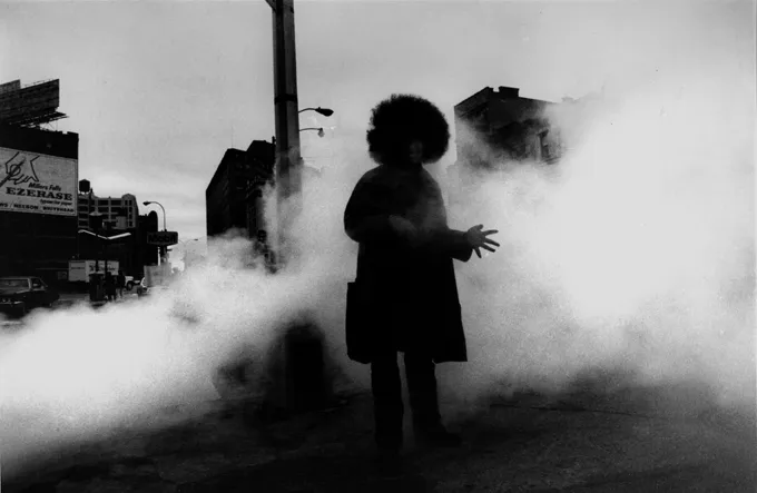 Così vediamo gli spazi popolati da esseri bidimensionali, da una fauna anche aggressiva, ma sempre finta: i leopardi, i leoni, i gorilla dai manifesti o imbalsamati non spaventano, non sono che fantasmi che abbiamo costruito per giocare, passare il tempo prima della svolta che ci indica il cartello segnaletico. In La città invasa (1972-1984), uno dei quattro lavori presentati in mostra e pubblicato nel 1978 dalle edizioni Punto e Virgola di Luigi Ghirri, le ombre hanno un’unica direzione, e le scritte – insegne, cartelli, slogan, titoli – che passano veloci da immagine a immagine formano il poema frammentario, ultrasperimentale e mai concluso di un’epoca stretta nel caos iconico. Salbitani stesso, scrivendo di questo suo ciclo di immagini, fa riferimento all’assenza di volume dei corpi che vede muoversi per le strade: “I cittadini moderni sembrano piatti e incorporei”, e in fin dei conti appaiono sempre seminascosti da immagini svolazzanti, che siano bandiere o riflessi caleidoscopici, sempre scuri.