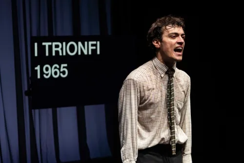 Per sempre offre a queste qualità un magnifico banco di prova, soprattutto quando, nella sezione conclusiva di questa travolgente giostra, le lettere lasciano il posto a un lungo estratto da I Trionfi: il monumentale poema dedicato ad Alain, pubblicato nel 1965 e primo di una trilogia che di questo amore è sogno e rivelazione. Qui Bandini accantona qualsivoglia ironia, qualsiasi separazione con la parola pronunciata: se ne fa abitare, la incarna, la rincorre e la possiede. È un virtuosistico tour de force, un conflitto mnemonico, un’elettrica ed elettrizzante dimostrazione di dépense, di dispendio di energia e soprattutto d’amore. Ecco, di nuovo, il Barthes dei Frammenti, a ricordarci che “quando il dispendio amoroso viene continuamente riaffermato, senza freno, senza soluzione di continuità, si verifica quella cosa splendida e rara che si chiama l’esuberanza e che è uguale alla Bellezza”: un’esuberanza, prosegue, identica a quella del fanciullo. Ed è un fanciullo euforico, Bandini, in pantaloni corti e calze sotto il ginocchio, camicia a quadri e giacca scamosciata (lo styling è di Ettore Lombardi) che vede in Alain un essere “quasi adulto, eppur così bambino”, e che ne diventa simulacro amandolo, fondendosi a lui e con lui. I Trionfi appaiono qui non più soltanto un prodigio letterario, ma anche la testimonianza di un amore comunissimo e irripetibile: Per sempre restituisce e mette in luce i legami, le corrispondenze, le relazioni tra la poesia e la vita, tra i versi e le lettere, ravviva la fiamma dei Trionfi illuminandone, una volta ancora, la matrice autobiografica e sentimentale. Ma di questo sentimento Per sempre mostra — accanto alla carica generativa, alla valenza creatrice — l’unicità, la differenza, l’alterità: lo scandalo di un amore che, nell’Italietta del 1960, è ancora inaccettabile. Sono le giornate successive al discusso debutto dell’Arialda, quelle in cui Giovanni scrive ad Alain di quanto “l'esplosione del conformismo e del livore” non voglia fermarsi: il “ritorno dello spirito fascista nel paese” — di memorabile, asciutta rabbia la sequenza in cui Bandini recita queste frasi — impone una volta ancora un esercizio di “rischio, coraggio e libertà”. In queste stesse settimane in cui Per sempre calca i palcoscenici nazionali, a sancire un nuovo rinascimento testoriano è anche VIVONO. Arte e affetti, HIV-AIDS in Italia. 1982-1996, la mostra a cura di Michele Bertolino allestita negli spazi del Centro Pecci fino al 10 maggio: a risuonare nel museo pratese, in un documento video d’epoca, è In Exitu, il romanzo del 1988 poi adattato per il teatro e che nella vicenda di Riboldi Gino — l’eroinomane che si prostituisce per acquistare le dosi, e che muore alla Stazione Centrale di Milano — tratteggia un’epoca drammatica, un destino di emarginazione e dolore, una possibilità di salvezza. È in quel margine che è “improprio definire alba”, ma che non è possibile “ritenere notte”, che Testori chiude la storia di In Exitu: un tempo in cui forse ha sempre vissuto e scritto, e dal quale parla a un oggi altrettanto dissestato. Sono le ore — lo scrive Giovanni ad Alain, nel settembre 1960 — “che non sono più giorno ma non sono ancora notte, o che non sono più notte ma non sono ancora giorno”, le ore in cui anche la ragione concede spazio alla follia, per dare forma “all’Uno, il nostro Uno, il nostro capolavoro”, il per sempre.