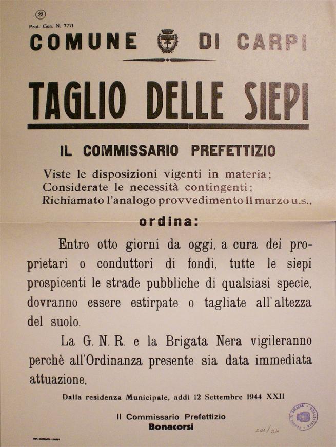 Taglio delle siepi, Istituto storico della Resistenza di Modena