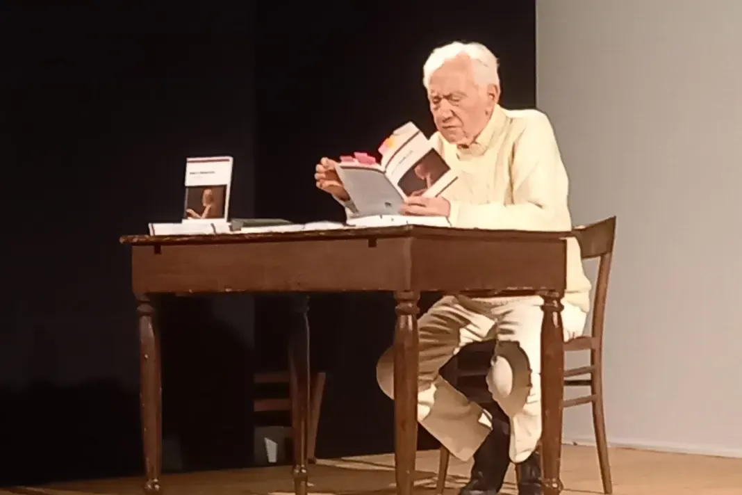 Ma bisognerebbe vederlo muoversi. Lavorando a questa chiacchierata con Massimo de Vita, da quaranta e più anni anima del Teatro Officina di Milano, avverto bene certi limiti della parola scritta: non nel senso pigro dell'impotenza a rappresentare — ci vorrebbe una moratoria per l'aggettivo "indescrivibile" — quanto perché l'arte di de Vita rifiuta la pur minima staticità richiesta dal linguaggio illustrativo. Vale per ogni attore, certo: ma questo attore ha quasi novant'anni, e non è semplice mostrare quanto le sue parole vivano realmente solo nel modo in cui vengono pronunciate o recitate — evitando con ciò lo stereotipo dell'anziano brioso.