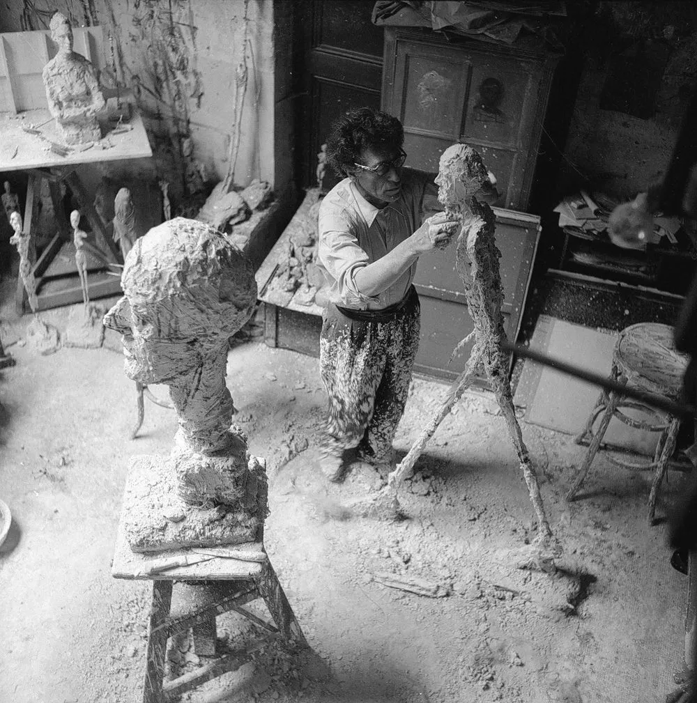 Ernst Scheidegger, Lavorando a “Homme qui marche I”, 1959, © Edizioni Casagrande e Stiftung Ernst Scheidegger-Archiv, Zurich.