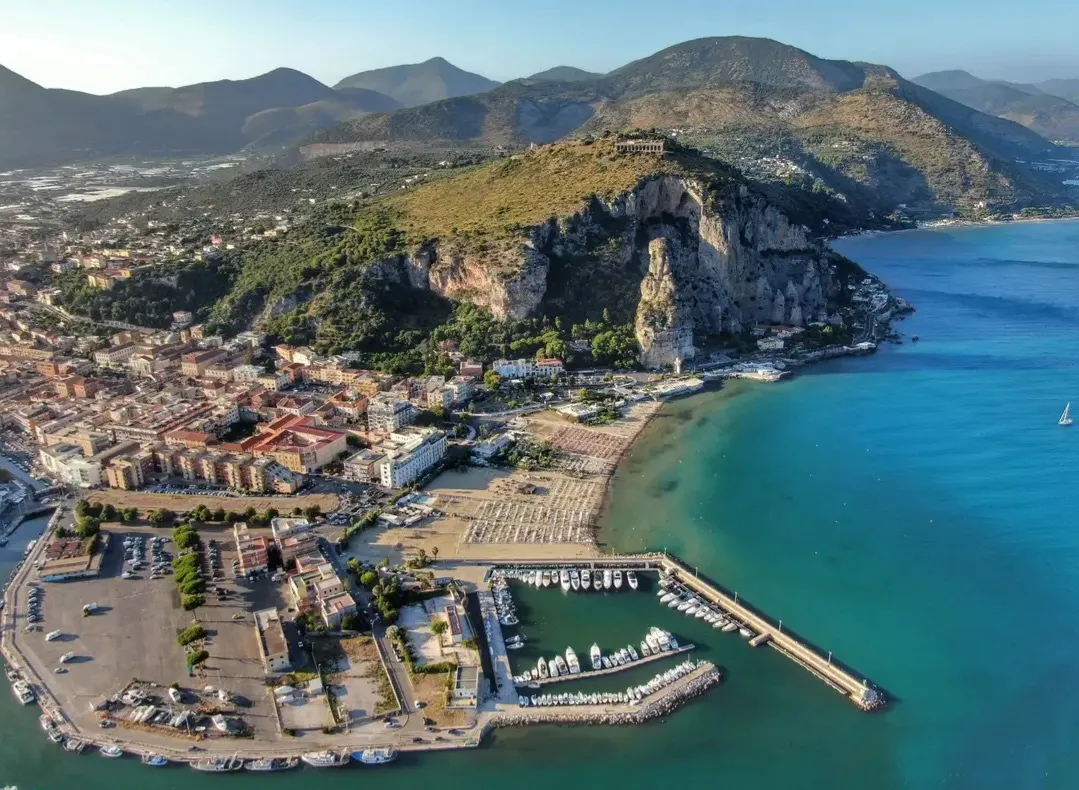 Terracina è il suo porto. Oggi un porto turistico invero poco efficiente, ma al tempo dei Romani porto militare e commerciale tra i più importanti dell’Impero. Guardandolo dall’alto, dal Monte Giove, se ne intuisce ancora la forma singolare: un cerchio quasi perfetto proteso nel mare.