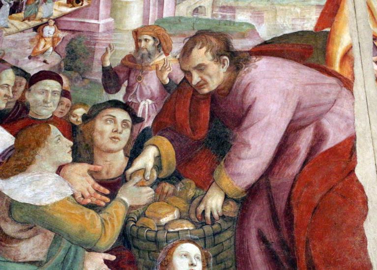 Raffaellino del garbo, Moltiplicazione dei pani e dei pesci (dettaglio), S.M. Maddalena de' Pazzi, Roma.