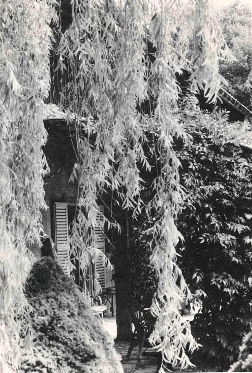Quasi ogni foto testimonia la ricchissima e variopinta vegetazione della residenza. È quasi coperto dagli oleandri anche il cartello Ma Trouvaille: questa foto viene scartata, e così quella che riprende l’ingresso alla tenuta, sormontato da una specie di arco metallico con quattro grandi e sottili volute. Con discrezione lo scrittore correggese si avvicina alla dimora: su un lato, appoggiati alla pavimentazione in palladiana, la statuetta colorata di un elefantino bardato, un tavolino, una poltrona in vimini, un innaffiatoio.