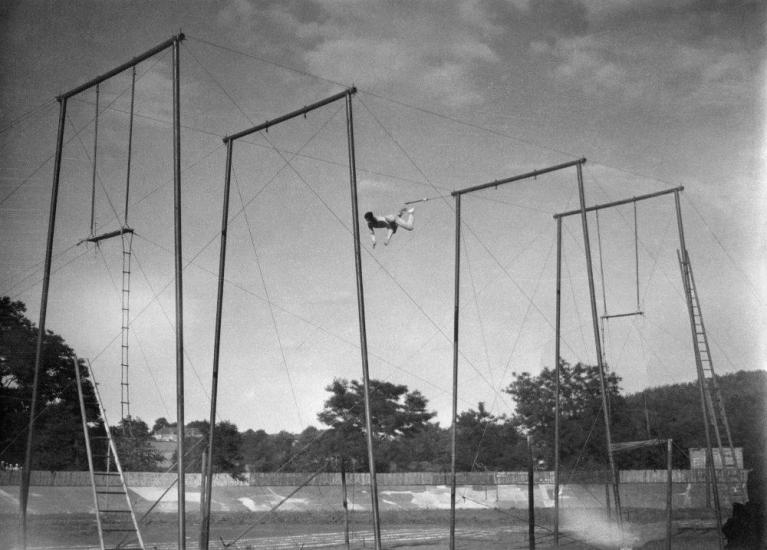 Oppure enfatizza la dimensione drammatica di una scena banale: una donna con la schiena a ponte sembra in stato di trance, nella posizione della isterica, e pare evocare anche la danza estatica e dionisiaca di una menade; il volo nel vuoto di un trapezista, sospeso dinnanzi alla sparizione di una barra ad altalena che non potrà afferrare.