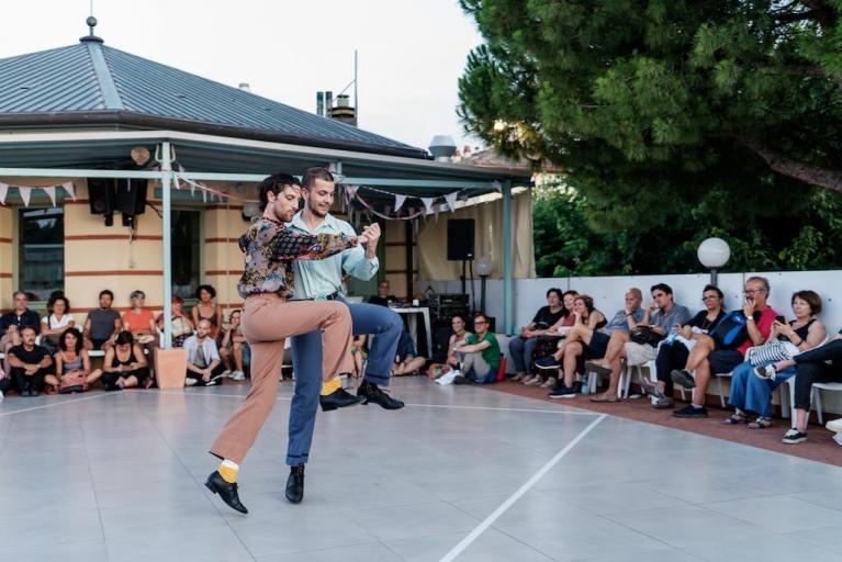 Save the Last Dance for Me di Alessandro Sciarroni, invece, è un processo di trasmissione, sia didattico sia performativo, di un ballo di coppia tradizionalmente eseguito da uomini che, prima di questa edizione del festival, solo cinque persone erano ormai in grado di danzare. Salvata dall’oblio, la polka chinata è materia di nuova invenzione, in dialogo costante con la tradizione e con il mistero che una danza a rischio di estinzione naturalmente porta con sé.