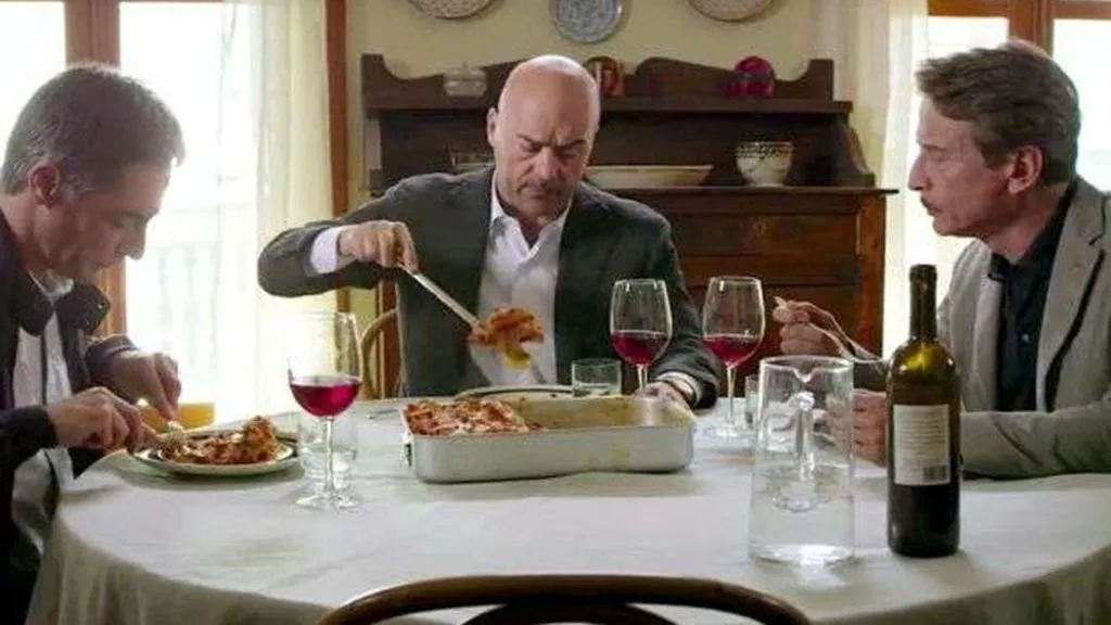 Cosa accade nella trasposizione televisiva? Sulla base dei presunti imperativi dell’audience, Montalbano non può star zitto e inattivo mentre mangia: nello schermo televisivo deve nel frattempo accadere qualcosa. Così, molto spesso il commissario, interpretato dalla sua icona Luca Zingaretti, mangia mentre guarda la tv, sia a casa sia al ristorante: e si mantiene la caratterizzazione del personaggio come di un goloso senza interrompere l’azione, la quale sotto forma di informazioni rilevanti si svolge negli schermi televisivi – con evidente myse en abyme. In altri casi, Montalbano mangia discutendo di lavoro, per esempio con il giornalista Zito o con l’ispettore Fazio. Più spesso viene accentuata la presenza di antagonisti che interrompono il rito del mangiare in silenzio o lo rendono inattuabile: si tratta di attori umani (lo stesso Augello che irrompe a casa del commissario con i suoi problemi sentimentali) o di attori non umani (il telefono, il citofono, rumori vari). In televisione, poi, l’opposizione Adelina vs Livia viene accentuata per diventare un vero e proprio conflitto fra le due donne.
