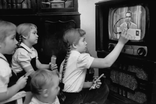 La televisione ha cominciato a diffondersi negli Stati Uniti e in Europa negli anni Quaranta, mentre in Italia ha avviato le sue trasmissioni il 3 gennaio 1954. Inizialmente, è penetrata nella società italiana collocandosi in spazi di natura pubblica come i bar, i cortili, le piazze, le sale cinematografiche o quelle parrocchiali e soltanto in un secondo tempo è entrata nelle abitazioni private. Lo ha fatto però in una maniera particolarmente efficace, insediandosi stabilmente nel giro di pochi anni nei salotti e nelle abitudini degli italiani. Ciò le ha consentito di contribuire a quell’intenso processo di unificazione linguistica e sociale delle diverse culture regionali che si è sviluppato in quel periodo. La RAI, infatti, ha cominciato a svolgere all’epoca un ruolo pedagogico-culturale strettamente derivato dalla sua natura di ente di Stato e ha mandato in onda perciò dei programmi (Telescuola, Non è mai troppo tardi) tesi a favorire un processo di alfabetizzazione di massa della popolazione.