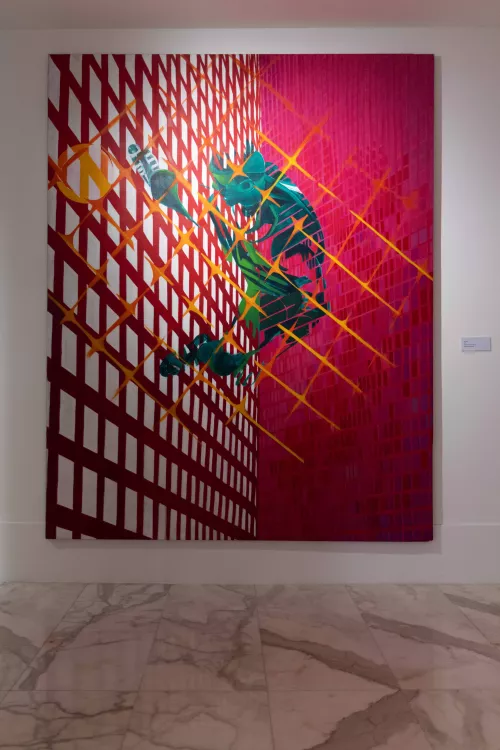 Le opere di Maselli, a distanza di quasi ottant’anni, conservano intatta la loro forza espressiva. Con New York, la sua pittura si trasforma, approdando a grandi dimensioni. Il contatto con la metropoli ispira un ritorno alle tensioni futuriste, ma intese attraverso la velocità nello spazio, non per l’idea di progresso. Non è un caso che le opere post-newyorkesi risentano di echi, in particolare, di Balla, come in Palazzo e fili elettrici o Bar a New York entrambi del 1956. Soprattutto sono gli elementi formali isolati della città e trasformati in elementi pittorici a sedurla. Come ricorda Federica Pirani nel saggio in catalogo, Maselli si sente più vicina a un fotografo come Weegee, cronista della New York notturna, violenta, vagabonda, capace di far emergere con le sue immagini fortemente ravvicinate e violentemente illuminate le trame e i pattern delle zone più sordide della metropoli moderna.