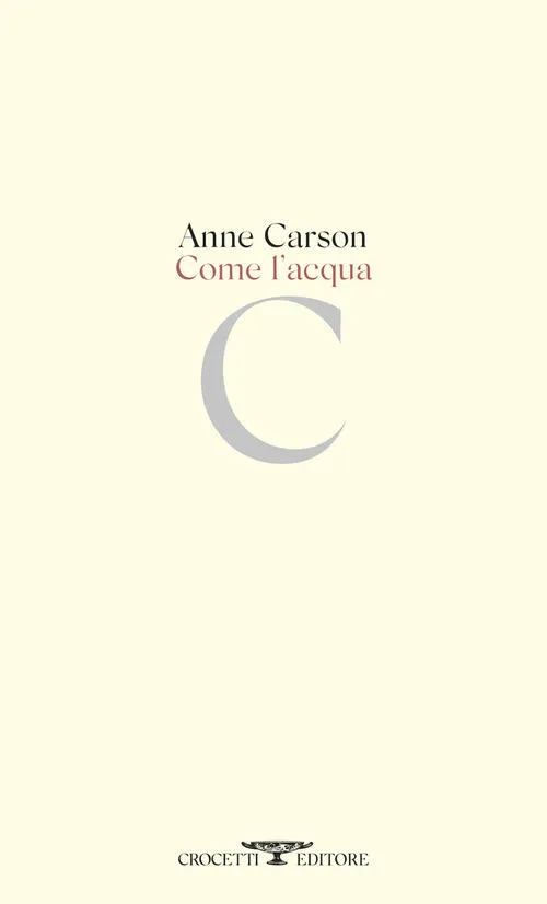 Fin dagli esordi saggistici – Eros the Bittersweet è del 1986 (una lunga e affannosa rielaborazione della tesi di dottorato discussa all’Università di Toronto nel 1981) – in Carson è già difficile tracciare un confine netto, per non dire formalmente efficace, tra poesia e prosa. Lo è ancora di più in Come l’acqua, bella ed intelligente traduzione di Plainwater (1995), uscita oggi sulla scia della “Carson-Renaissance” italiana per Crocetti (che insieme a Utopia editore ha introdotto e diffuso Anne Carson in Italia). Il volume arriva grazie al suo lettore e traduttore più attento, Patrizio Ceccagnoli, che restituisce alla poesia di Carson una presenza concreta: la riporta sugli scaffali – anche quelli più laterali e defilati, magari nascosti, nelle Feltrinelli della stazione o nei centri storici della provincia italiana – rendendo di nuovo visibile un libro ibrido come quello di Carson.
