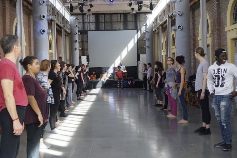 Di pomeriggio, invece, senza muoverci dal DamsLab, siamo andati a scuola da membri di comunità diverse, per studiare mondi lontani e astratti nel nostro immaginario, attraverso la precisione e la vastità del dettaglio. Così, nelle dieci lezioni della School of Integration ideata sempre da Tania Bruguera abbiamo conosciuto la poesia orale eritrea mentre partecipavamo alla cerimonia del caffè officiata dalla poetessa Ribka Sibhatu, appreso i rudimenti dell’antica tecnica musicale persiana, ascoltato tamburi senegalesi per imparare che battere, sfregare, colpire ha a che fare con comunicare, curare, cacciare gli spiriti maligni, festeggiare e danzare; e poi abbiamo tagliato e cucito tessuti provenienti da Africa occidentale e Sub-Sahariana per scoprire i messaggi in codice nascosti nei coloratissimi pagne, e decorato uova durante un rito ucraino chiamato Pysanka; del Marocco abbiamo conosciuto musica popolare e Saharawi, il rito tradizionale del thè, mentre della Palestina la grammatica del ricamo degli abiti tradizionali; e poi abbiamo ascoltato la storia di transizione da un campo a una casa popolare raccontata da Vincenzo Spinelli, figlio di padre rom abruzzese e madre sinti emiliana, partecipato al divertente e trashissimo karaoke cinese con melodie italiane e scoperto che in Perù ci sono tremila varietà di patate. Abbiamo conosciuto artigianato, lingue, musica, tradizioni culinarie e immaginari pop come sineddochi di interi universi, esercizi di contrattazione, di misurazione della distanza, di curiosità, per educare le menti a capire pensieri e schemi diversi dai nostri senza il bisogno di accettarli o rifiutarli per forza. Dentro Home, insomma, arti e attivismo si sono incontrati nel segno di una convivenza miracolosamente ecologica, di un equilibrio intelligente, di volta in volta rinegoziato, che nella circolarità ha rafforzato entrambe le dimensioni, ricordandoci, senza farci lezioncine, che «non c’è posto per tutti in Italia» è solo un’enorme bugia a cui noi abbiamo deciso di credere per pigrizia, spirito di conservazione e scarsa curiosità verso la vita fuori dall’orticello allestito sul balcone di casa.