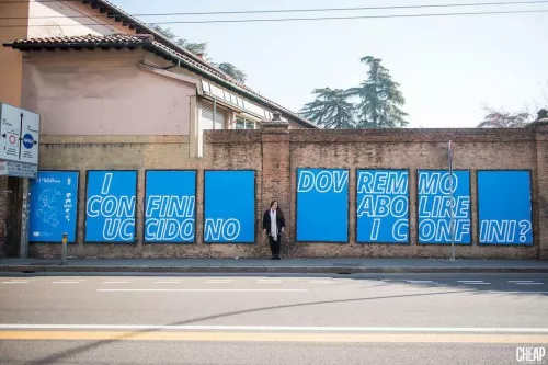 L’ultima fotografia, di Michele Lapini, documenta i cartelloni del progetto urbano “Cheap” per “Referendum” di Tania Bruguera.